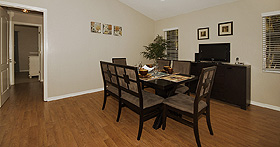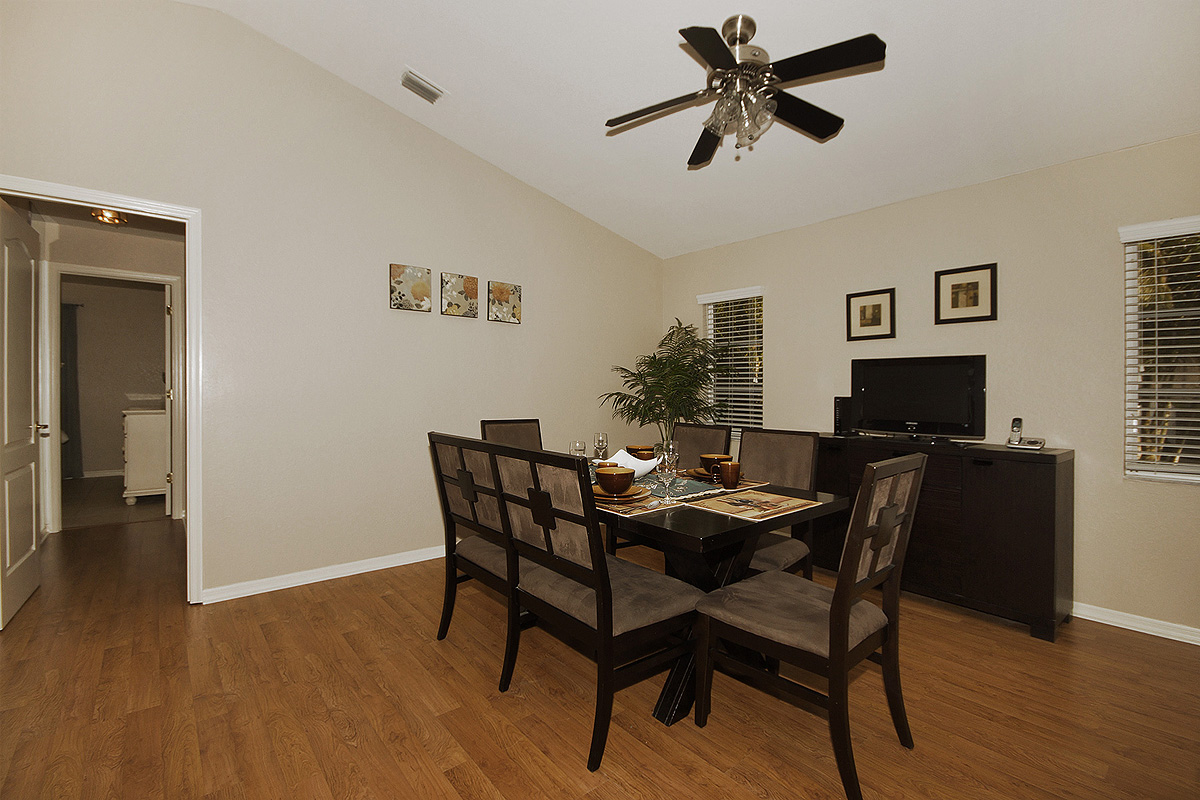 Das offene Esszimmer bietet mit sechs Plötzen genügend Raum um mit der ganzen Familie und / oder Freunden abendzuessen. |