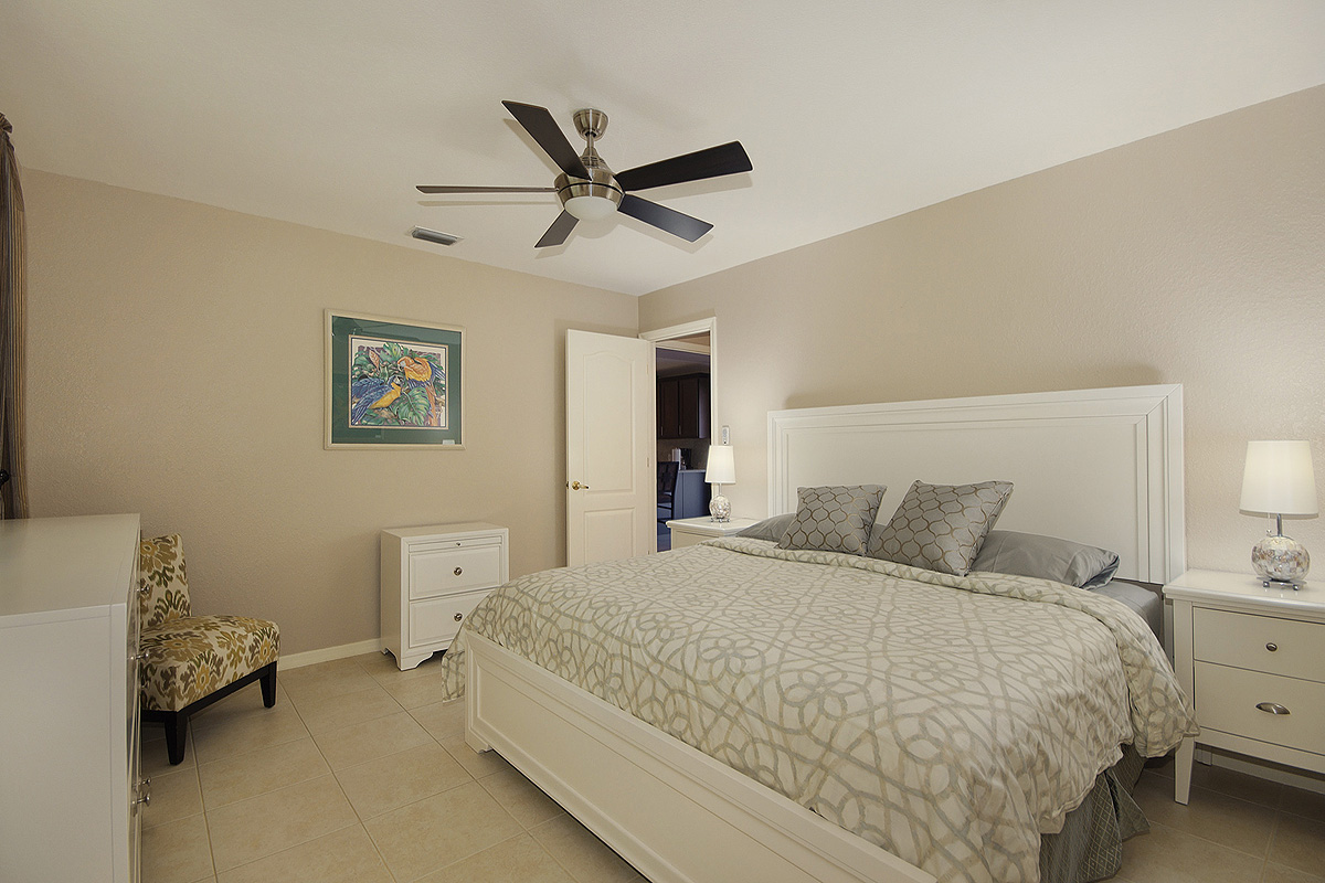 Das zweite Schlafzimmer ist mit einem „Queen-Size“ Bett ausgestattet. Es ist hell und freundlich eingerichtet. |