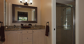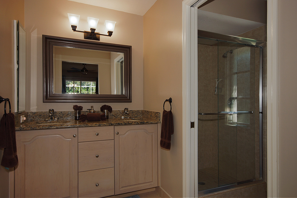 Das "Master Bad" ist sehr grosszügig, ausgestattet mit einer grossen Dusche und zwei Waschbecken. |