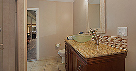 Das zweite Badezimmer ist mit einer „Walk-In“ Dusche, einem Waschtisch und einer Toilette ausgestattet. |